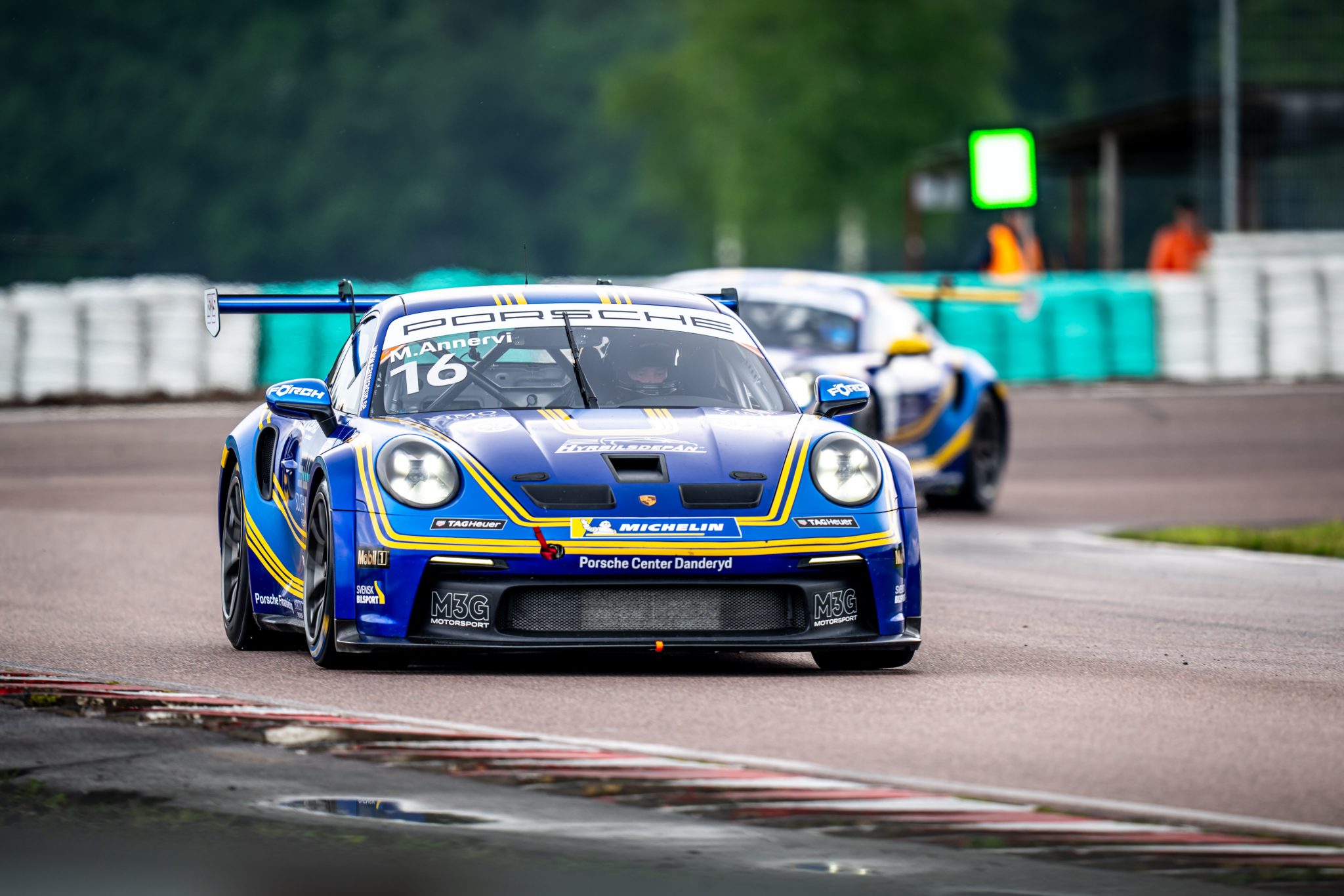 – Jätteroligt, men det här hade jag inte förväntat mig, sa Dahlgren, som medgav att han än så länge kommer bättre överens med Porsche 911 GT3 Cup (992) på blöt bana.