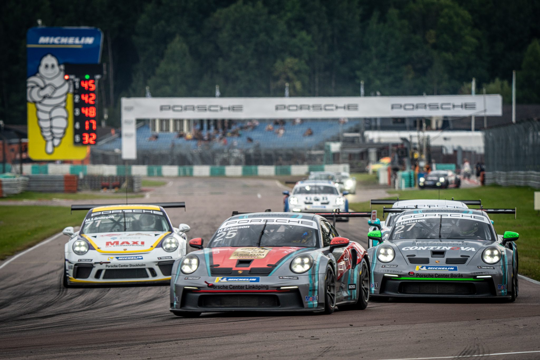 Hampus Ericsson, som ligger på tredje plats i Porsche Carrera Cup och som vann dubbelt på Gelleråsen Arena förra året, var femma i Q1, men trea i Q2. I morgondagens andra heat delar han därför startled två med Sundahl. I det första står Ericsson i tredje led tillsammans med Edvin Hellsten, som var sexa i båda kvalomgångarna.