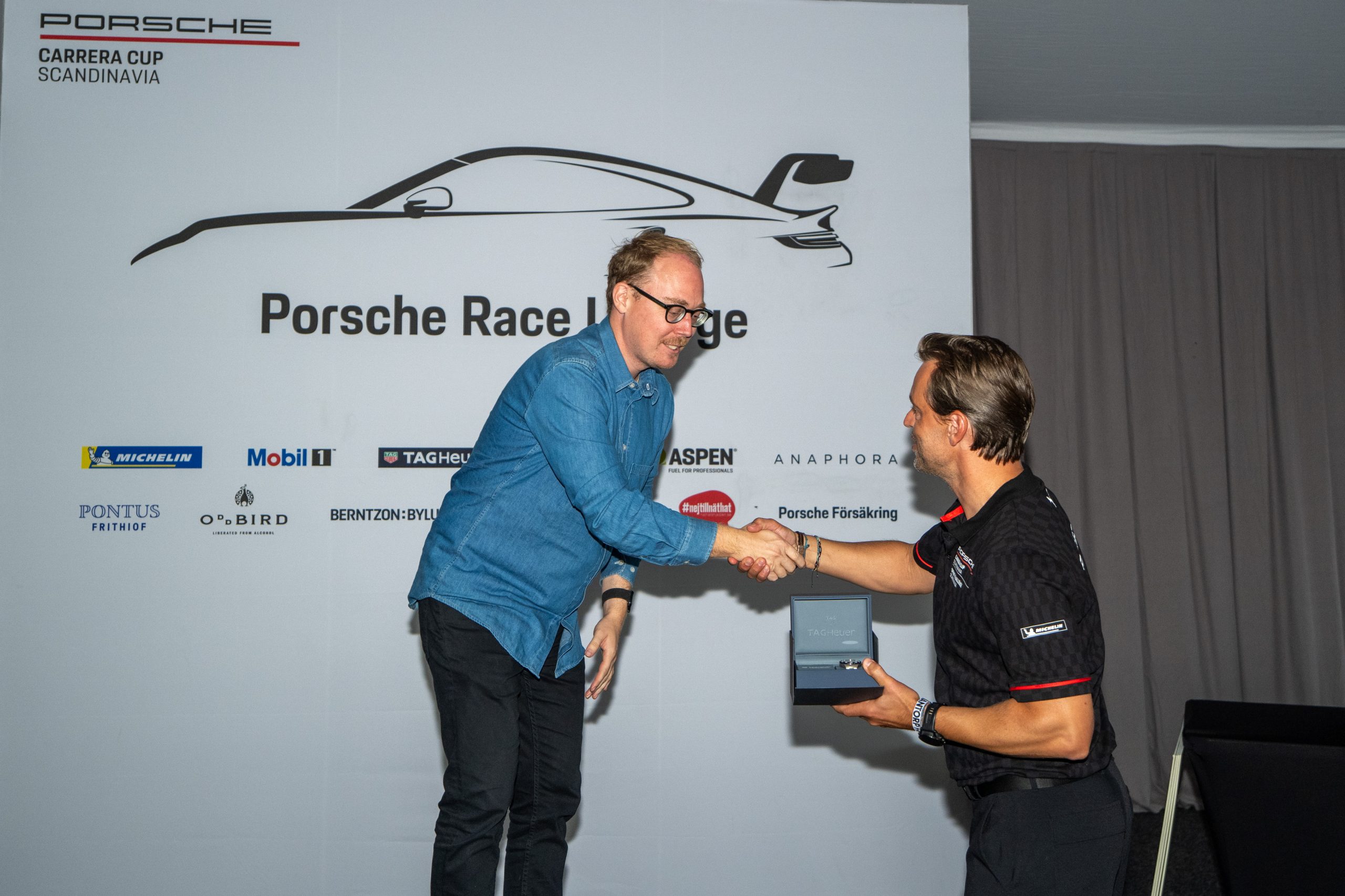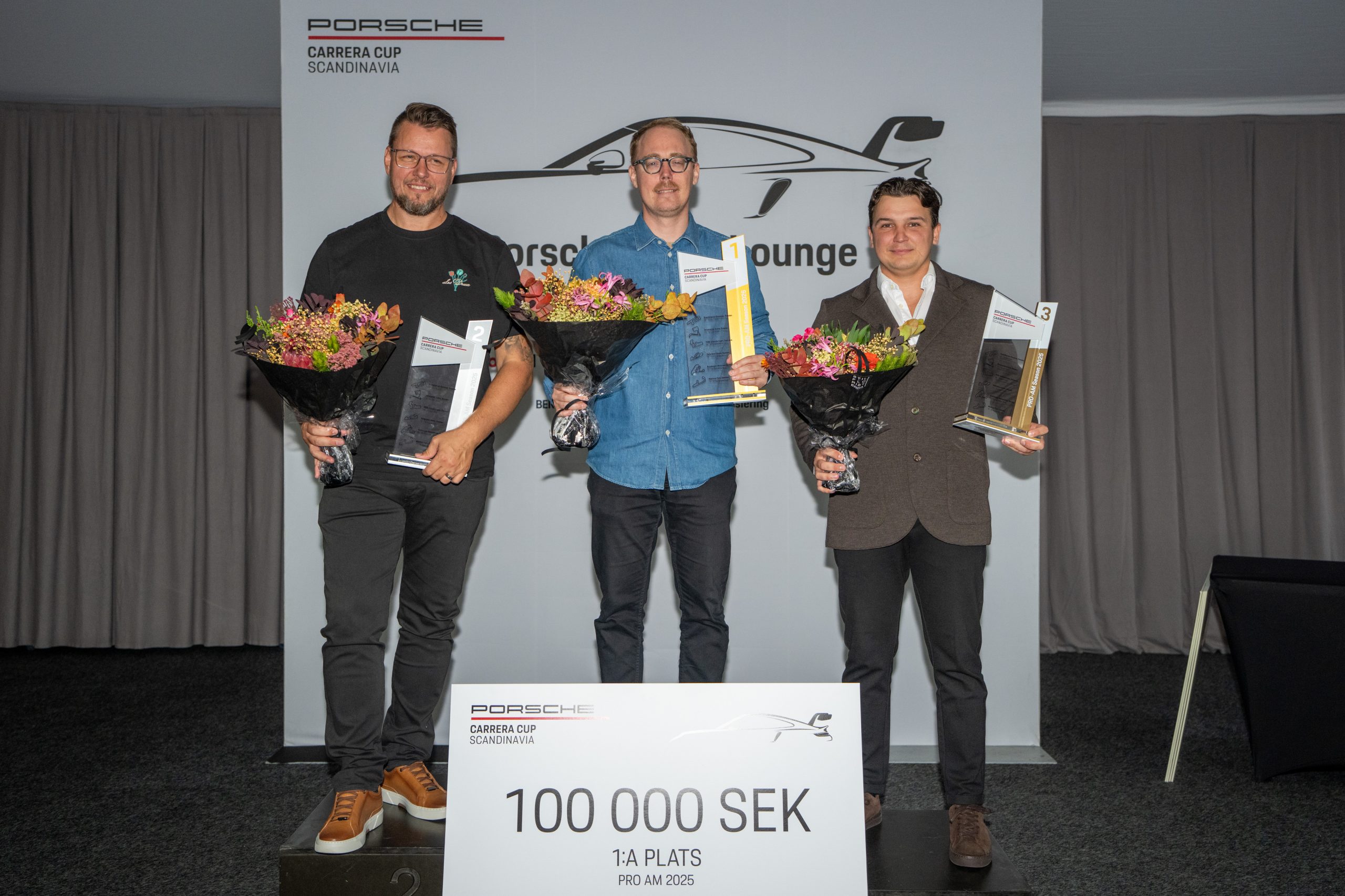 Övriga priser i Porsche Carrera Cup Scandinavia hamnade hos Micke Kågered Racing och Stenhaga Motorsport. Hos Micke Kågered hyllades Emil Persson – för tredjeplatsen i Porsche Carrera Cup – och Albin Wärnelöv och Kjelle Lejonkrans – mästaren och tvåan i Pro Am-kategorin, där Wärnelöv även fick ta emot en exklusiv klocka för sin seger i TAG Heuer Fastest Lap Award.