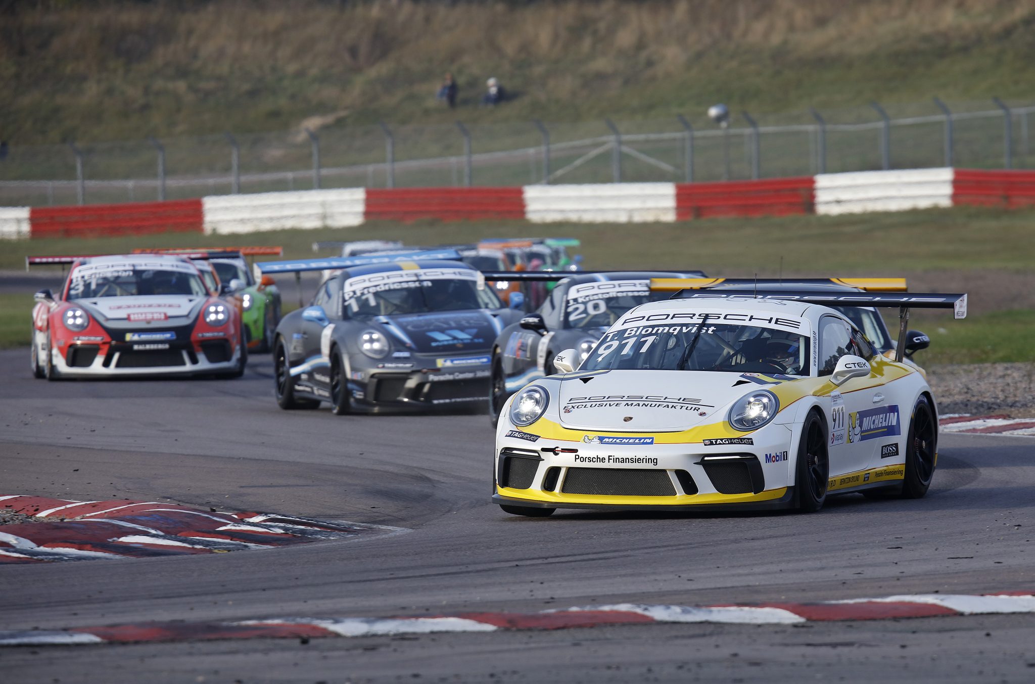 Tom Blomqvist, son till rallylegendaren Stig Blomqvist, kör en av Porsche Sveriges gästbilar i årets näst sista deltävling i Porsche Carrera Cup. Den mångsidige och erfarne 26-åringen övertygade redan på torsdagens fria träning och fortsatte med topprestationer även i fredagens kval och det första av helgens tre race. Från pole position tog Blomqvist starten. Han uppvaktades visserligen av Lukas Sundahl i den första kurvan, men mästerskapsledaren valde att backa in bakom och inte ta några onödiga risker.