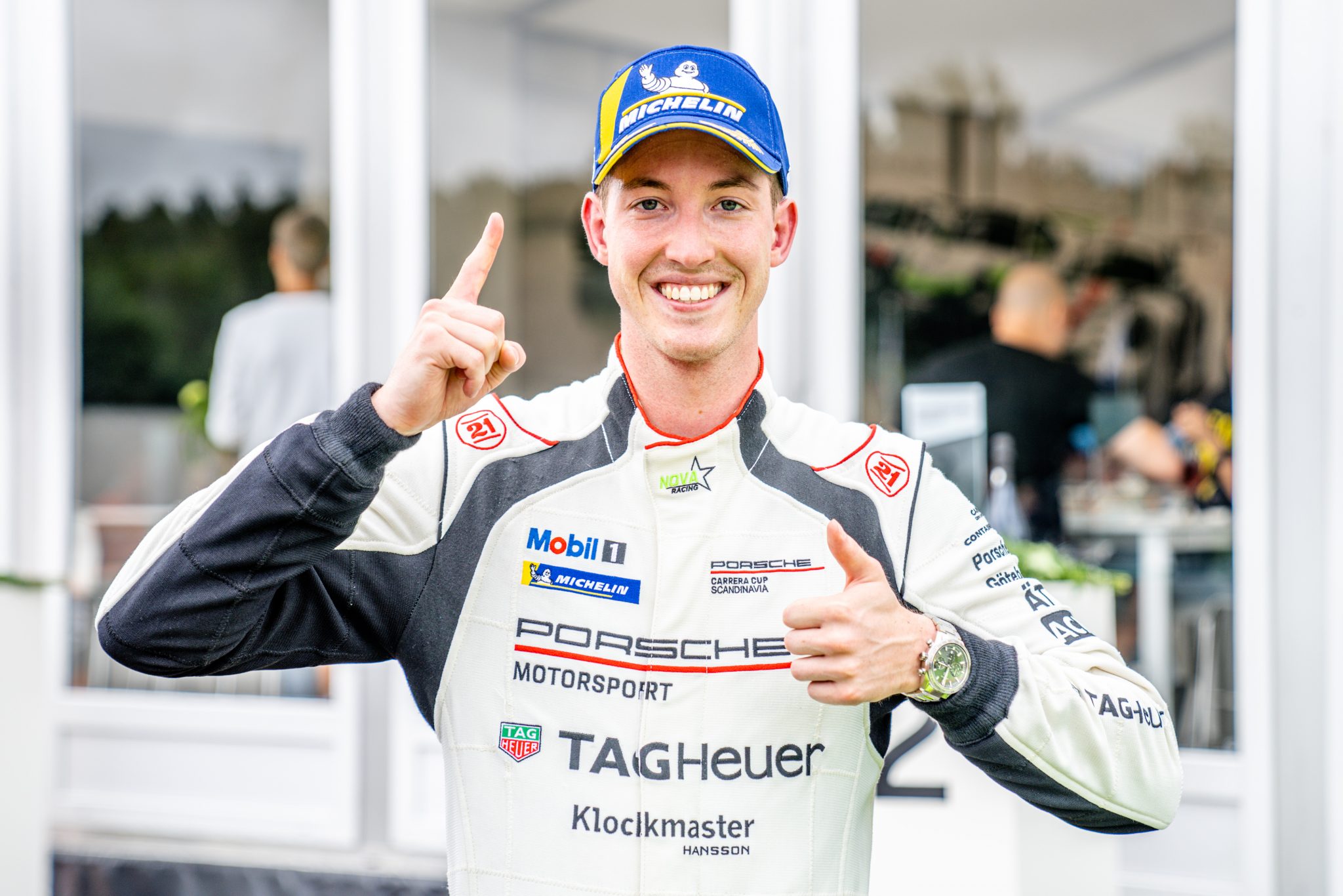 – Jag fick en sjukt bra start på det torra ytterspåret, kunde öppna upp en lucka till de bakom och göra mitt eget race. Kul att jag fick vinna mitt första lopp i Porsche Carrera Cup, sa en mycket belåten Hellsten.