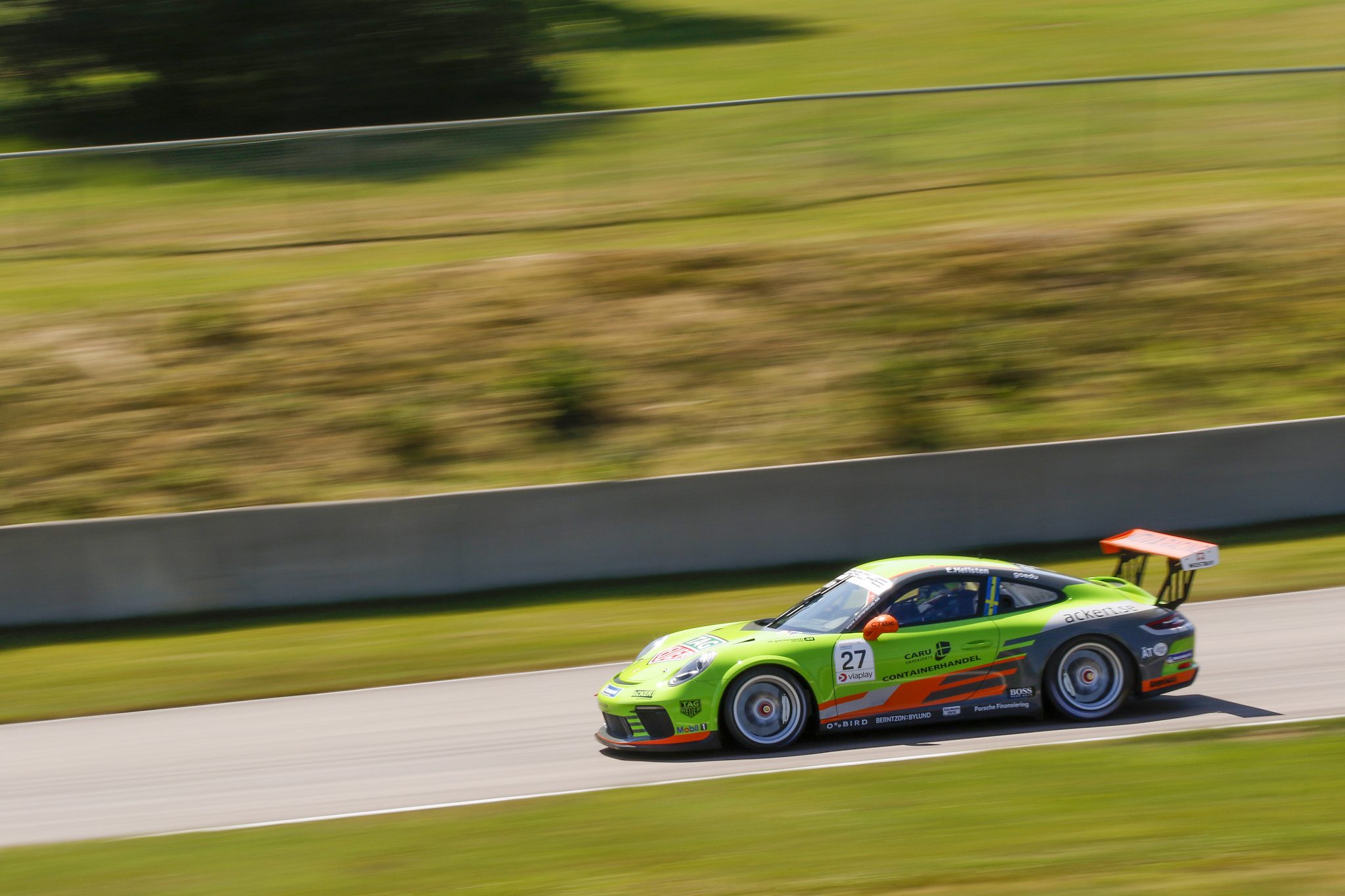 – Vi tog två vinster i Porsche Approved Cup och var supersnabba i kvalen på lite blött underlag. Gelleråsen är en rolig bana och jag tycker att jag kan den rätt bra, säger Edvin som den här säsongen tävlar i huvudklassen i en Porsche 911 GT3 Cup (991 II).