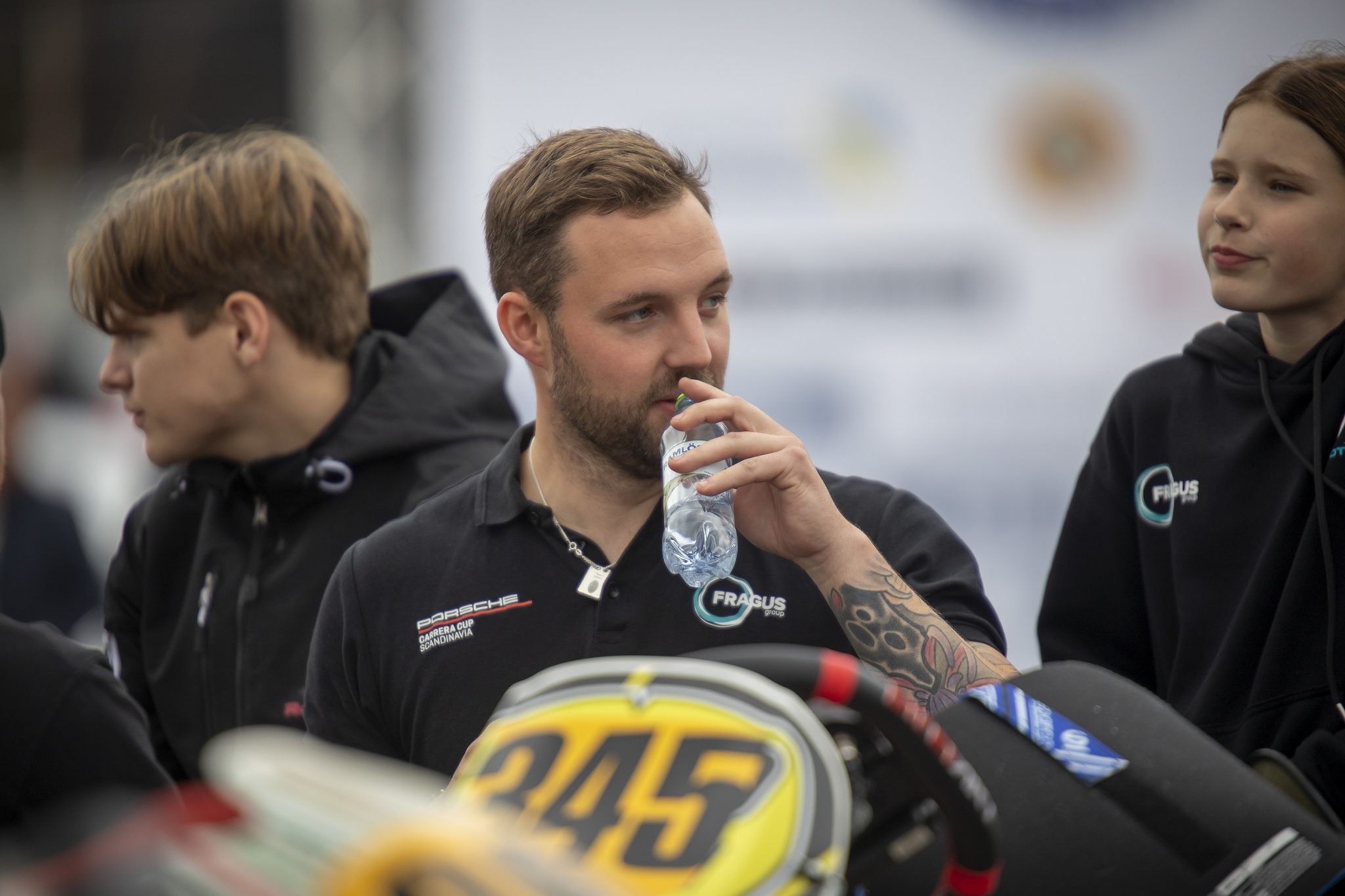 Men Porsche var i allra högsta grad även delaktigt i händelseutvecklingen på banan. En trio Porsche Carrera Cup-förare hade nämligen bytt sin cupbil mot en Rotax Max DD2-kart den här helgen. Prins Carl Philip var givetvis en av dem, men han hade sällskap av mästerskapskollegorna Emil Persson och Oscar Löfquist. Samtliga hejades fram av förarkollegorna Robin Hansson och Patrick Rundquist som var synliga i depån.