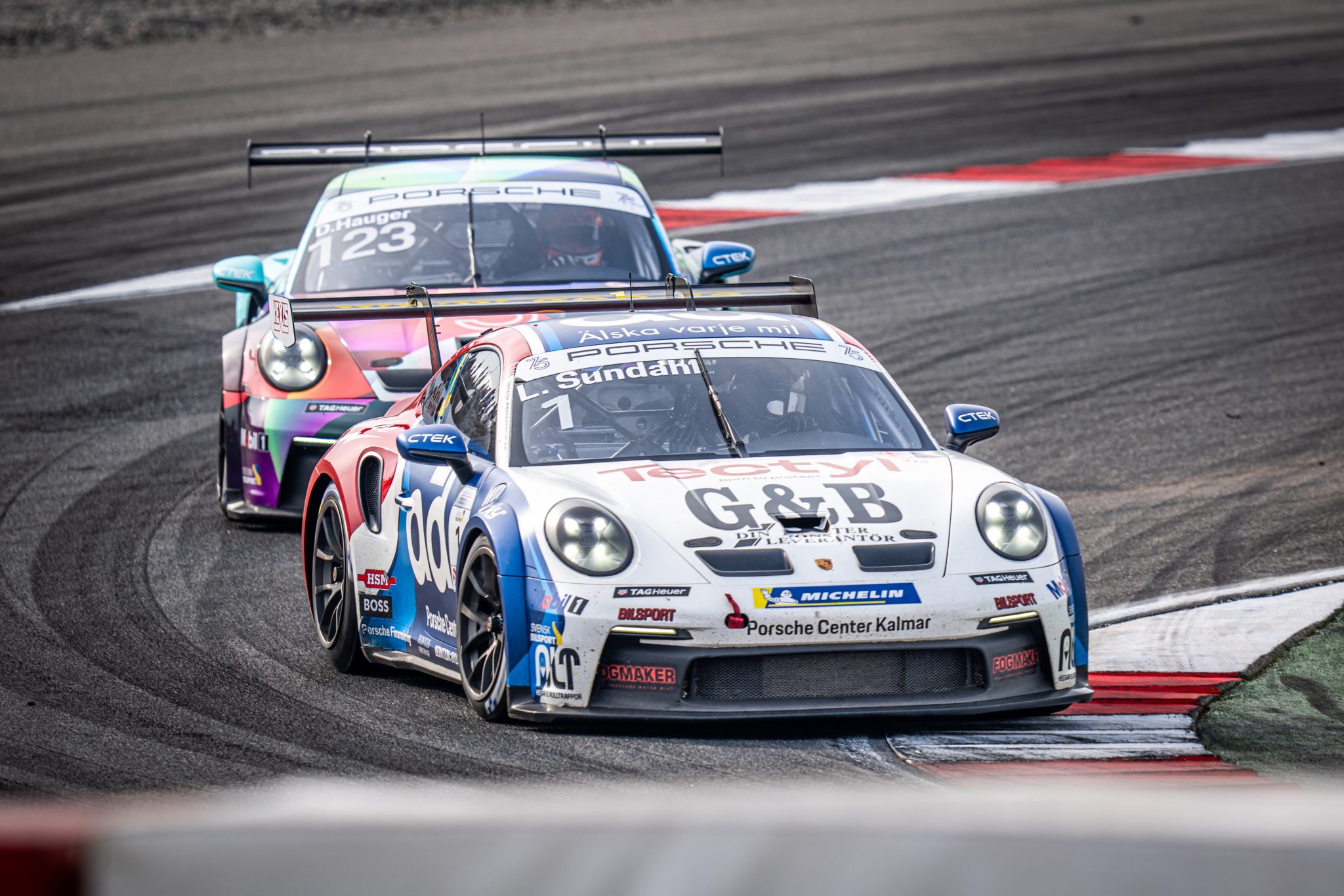 Nilsson och Ericsson får jaga. Lukas Sundahl blir den jagade. Den femfaldige mästaren fick visserligen nöja sig med tre pallplatser (3-3-2) i Porsche Festival på Rudskogen Motorsenter, men det är ändå han som har bäst utgångsläge inför avgörandet om två veckor.