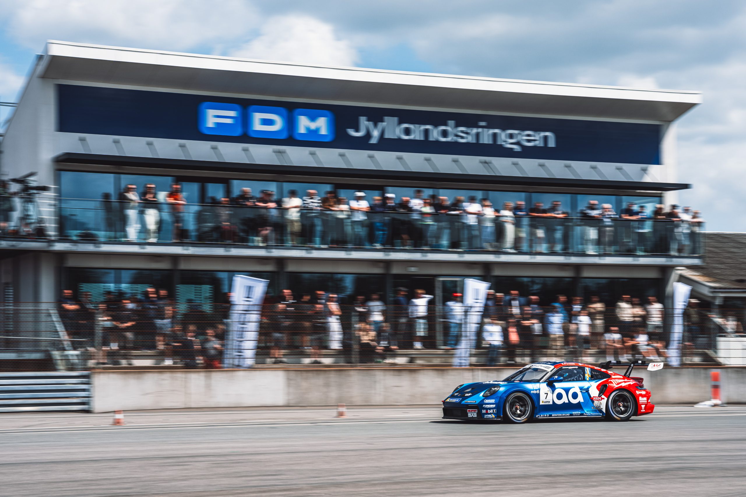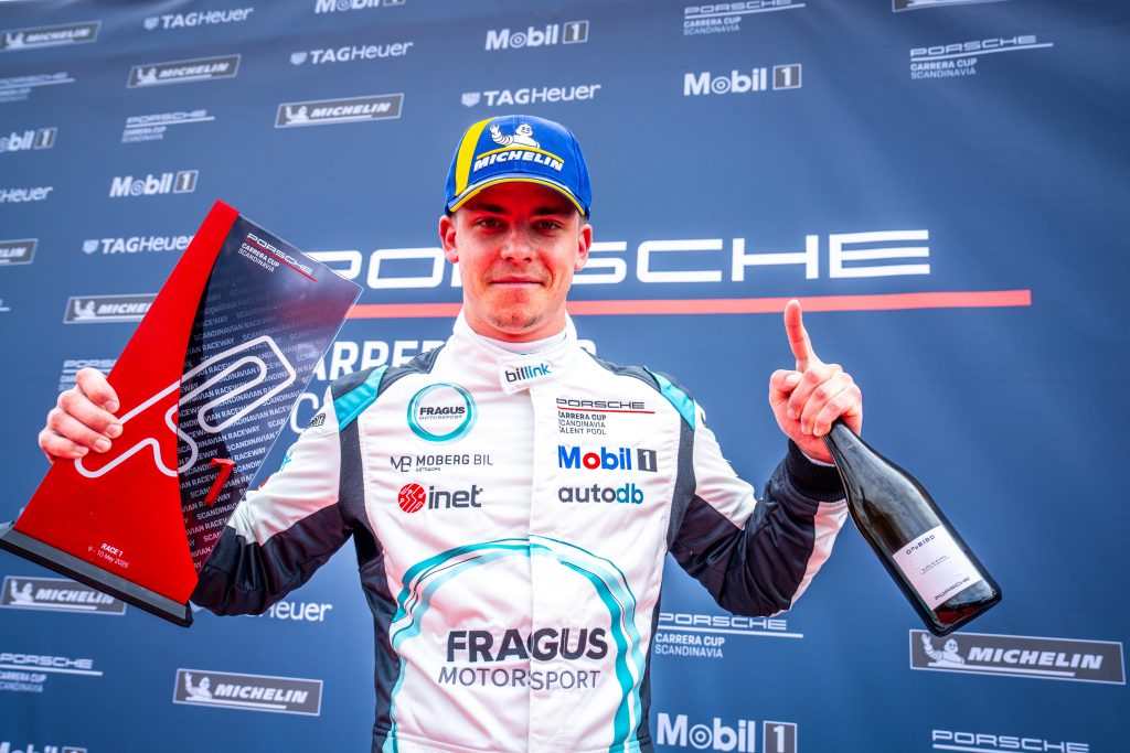 Emil Persson vann det inledande racet i Porsche Festival på FDM Jyllandsringen. Från andra ruta utmanade han polemannen Johan Kristoffersson och gick segrande ur striden efter att de åkt sida vid sida genom de första två kurvorna.