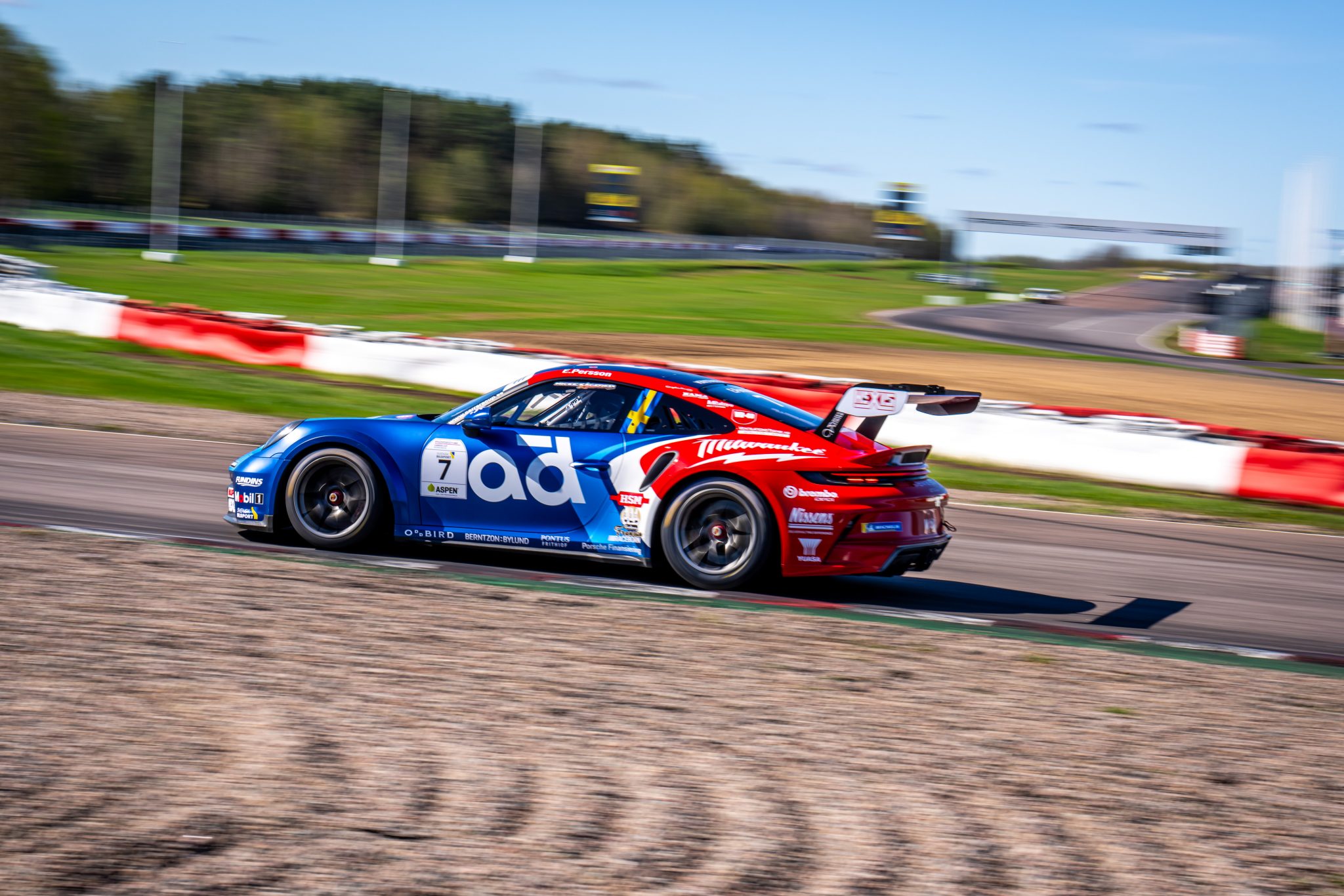 Närmast bakom sig hade Persson Fragus Motorsportduon William Siverholm och Daniel Roos. Roos och niondeplacerade teamkollegan Wilmer Wallenstam kom mer eller mindre till Mantorp Park direkt från Italien där de i helgen inledde tävlingssäsongen med gäststarter i det tyska Porsche Carrera Cup-mästerskapet.