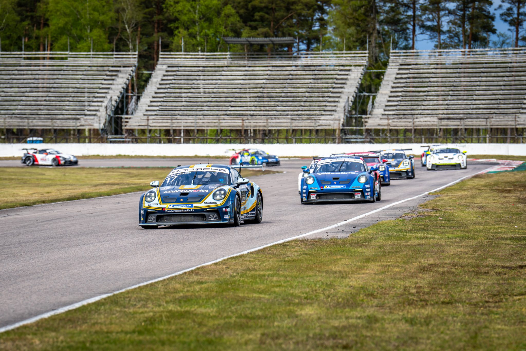 Tre år äldre Gustav Bergström kunde också blicka tillbaka på en lyckad premiärtävling. Fredagens kvalframgång var delvis en taktisk triumf och under lördagen fick han äntligen kliva upp på prispallen i Porsche Carrera Cup Scandinavia.