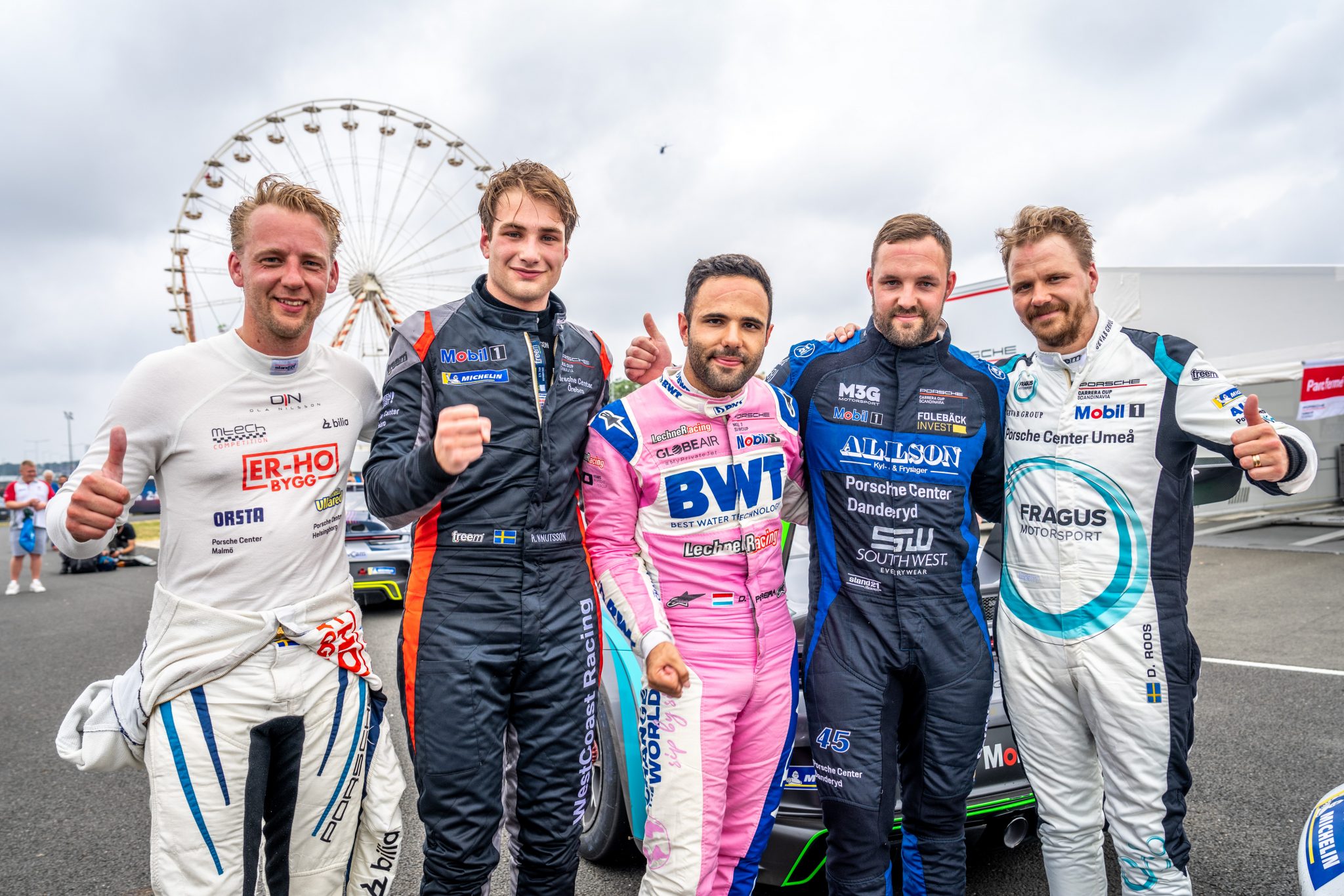 – Lite frustrerad är jag såklart, men också nöjd över poängen och att komma härifrån med hel bil. Jag behövde det här efter min mindre lyckade start i premiären i Anderstorp, sa Persson, som från första parkett såg hur gästföraren i Porsche Experience Racing, norrmannen Dennis Hauger, bromsade på sig, åkte av, tog sig upp på banan igen men tvingades bryta.