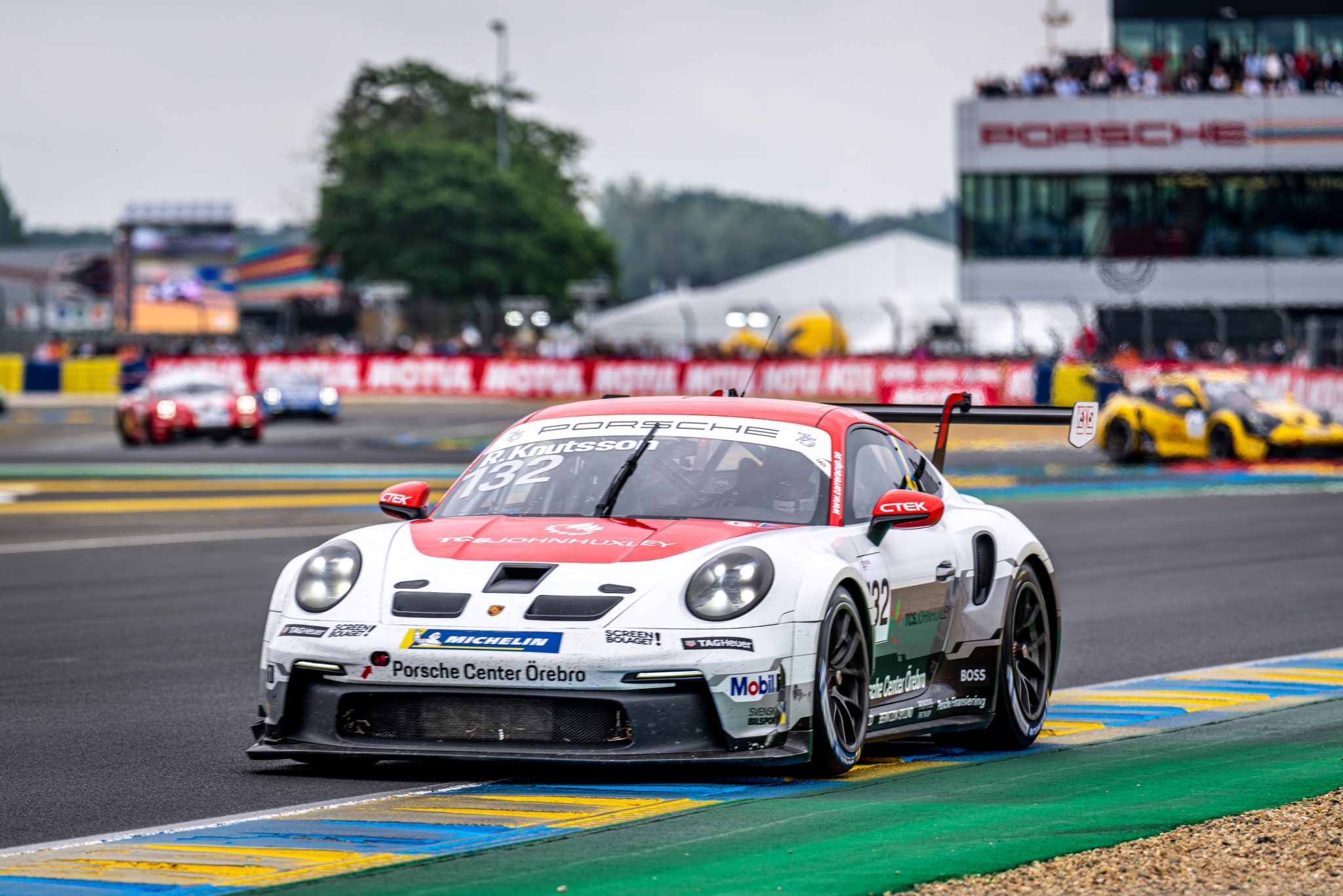 Porsche Carrera Cup Le Mans, arrangerat i samarbete mellan det skandinaviska och franska Carrera Cup-mästerskapet, värmde som sista klass inför starten i Le Mans 24H, upp närmare 350.000 åskådare. Publiken runt 13,6 km långa Circuit de la Sarthe bjöds på underhållning av högsta klass. Speciellt avslutningen på racet var dramatiskt då rutinerade Pereira, regerande mästare i Porsche Mobil 1 Supercup, fredade sig mot attacker från segersugne fransmannen Marvin Klein.