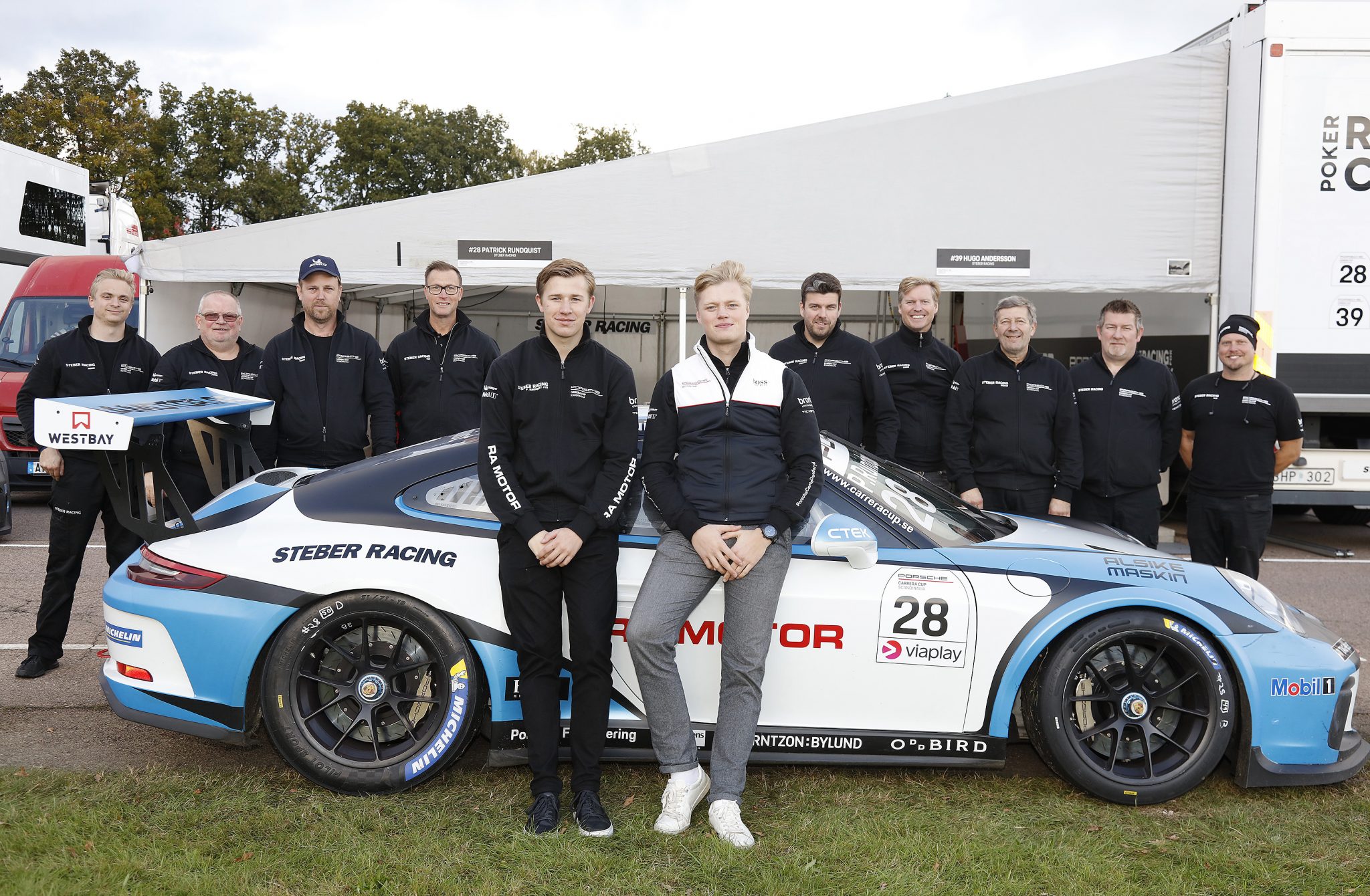 Det blev till slut en kamp mellan Steber Racing och Fragus Motorsport om teamtiteln i Porsche Carrera Cup Scandinavia 2020. Inför det sista och avgörande racet i mästerskapet var Steber Racings ledning endast fyra poäng. Ända blev det inget stort, avslutande drama. Eftersom en av Fragus Motorsports två förare inte kom till start hjälpte det inte att Pontus Fredricsson körde till sig 14 poäng. Steberduon Hugo Andersson och Patrick Rundquist noterades nämligen för det dubbla och kunde segerjubla ikapp med teamchefen Stefan Pettersson och övriga teammedlemmar efteråt. Prispengarna delade de på.