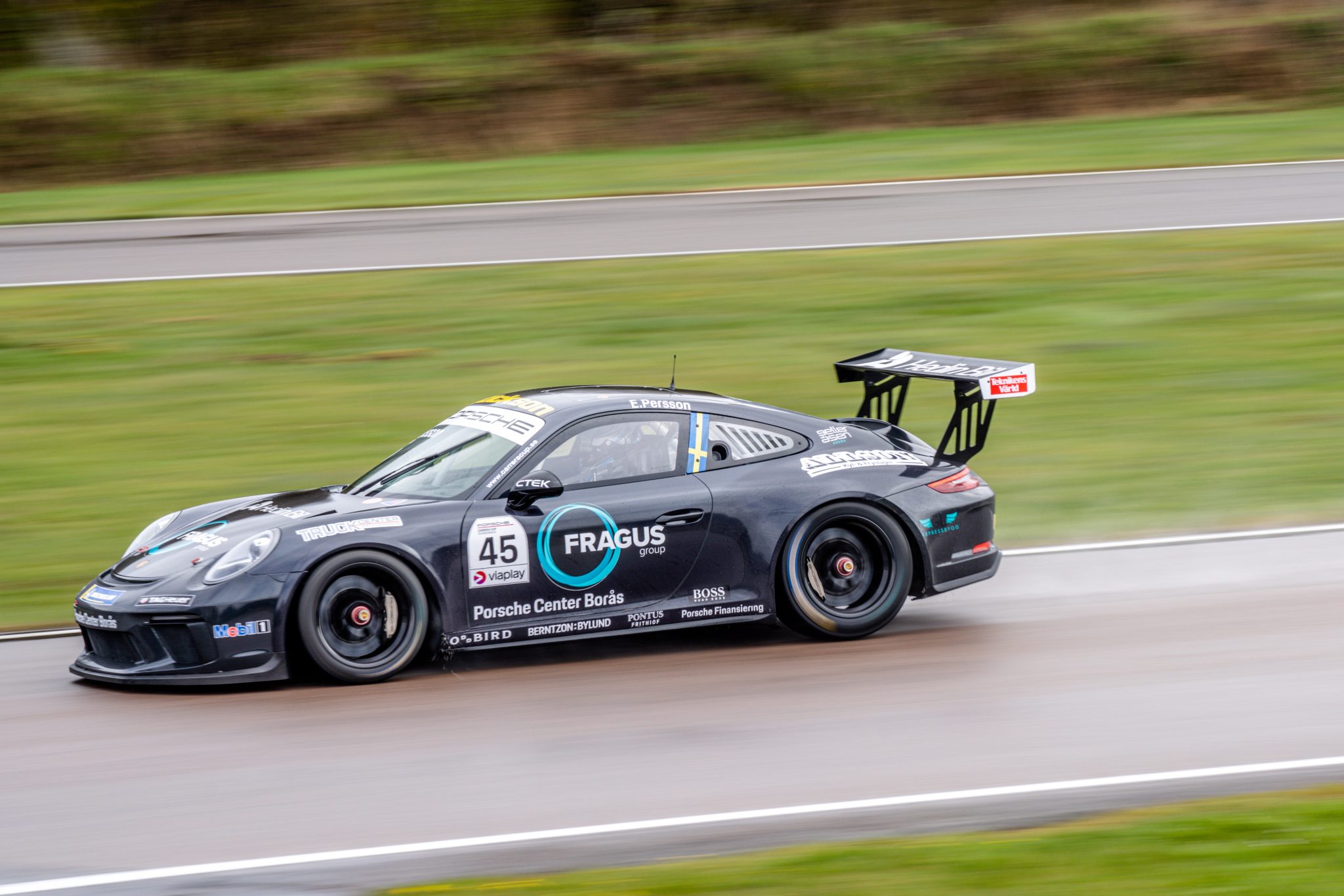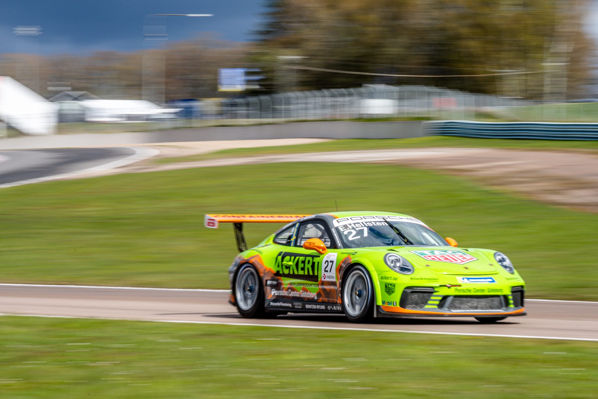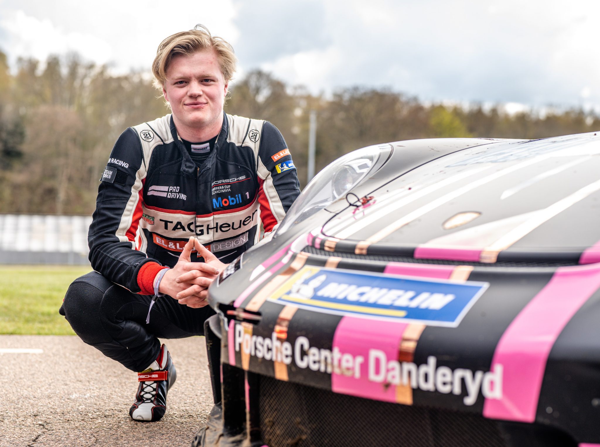 Hugo Andersson svarade också för en stark premiärinsats i Skåne. Dubbla tredjeplatser gav 34 poäng och en andraplats i tabellen. Till Anderstorp återvänder Hugo mer än gärna. Det var nämligen på Scandinavian Raceway han under fjolåret nådde sin hittills största framgång i Porsche Carrera Cup Scandinavia. I ett minnesvärt race däckade bokstavligt talat 19-åringen från Täby konkurrenterna. När alla andra rullade ut till det andra av de tre racen på regndäck chansade Hugo med slicks. Ett genidrag skulle det visa sig. Efter en lite halkig inledning började hans däckval betala sig i takt med att banan torkade upp. Hugo avancerade från tionde till andra plats och kunde i racets slutskede dessutom ta sig om ledande Lukas Sundahl och ta sin första seger i mästerskapet.